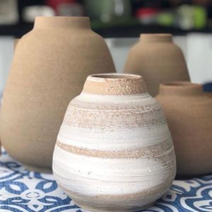 Cumbuca feita em argila branca com esmalte branco fosco rústico, dimensões 7,5cm altura x 13,0cm largura, passível de mínimas variações no tamanho e das cores.