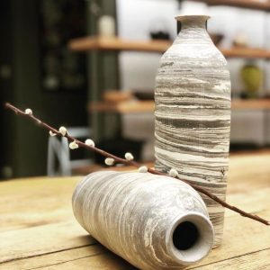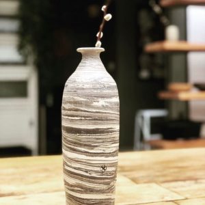Vaso Cilíndrico, feito com mescla de cores de argilas, dimensões 30cm altura x 11cm largura.