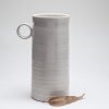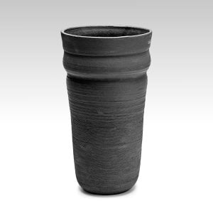 Vaso Cilíndrico com alças, feito em argila preta, com furo no centro para plantar ou fechado para decoração, sem esmalte apenas argila rústica, dimensões 23cm altura x 11cm largura.